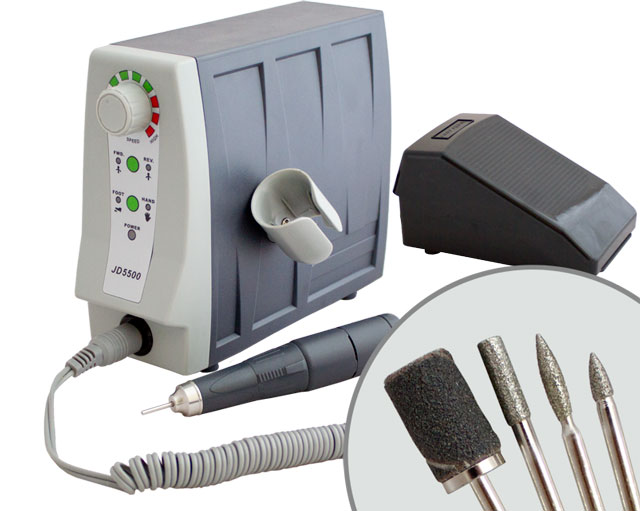 Elektrinė dildė JD5500 - 0-35000aps./min, dešinės-kairės sukimosi eiga, pedalas, 4 antgaliai